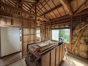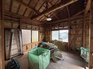 まずは2階部分の天井、壁内装仕上材から解体が始まりました